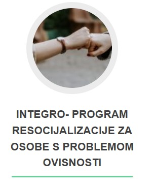 Program je namijenjen osobama s problemom ovisnosti i predstavlja nastavak našeg dvadesetogodišnjeg djelovanja na ovom području. Sadrži široku lepezu resocijalizacijskih usluga, inovativne usluge educiranja, informiranja i interakcije putem web portala, resocijalizacijske intervencije u kontekstima drugih pružatelja usluga, jačanje suradnji za razvoj inovativnih resocijalizacijskih intervencija.